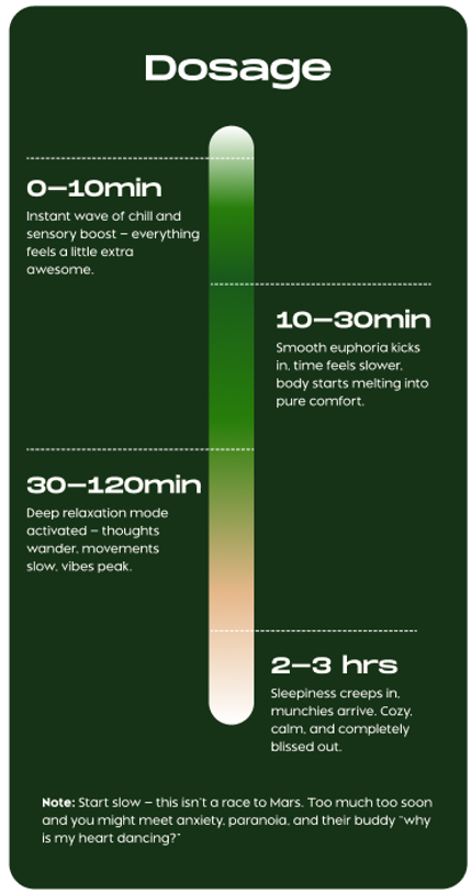 Smooth euphoria kicks in, time feels slower, body starts melting into pure comfort.